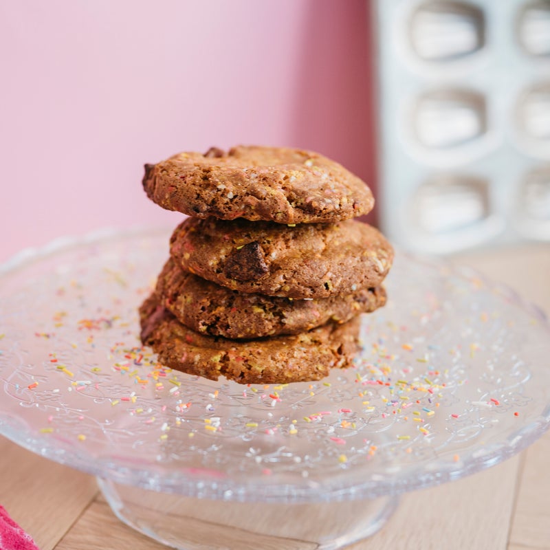 Heerlijke chocolade koeken, krokant van buiten chewy van binnen, gezoet met mijn zelfgemaakte vanille aroma. Ze zijn lactose en glutenvrij, maar worden wel gemaakt in een ruimte waar met gluten wordt gewerkt!